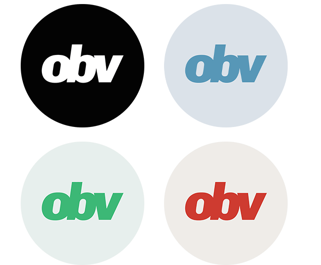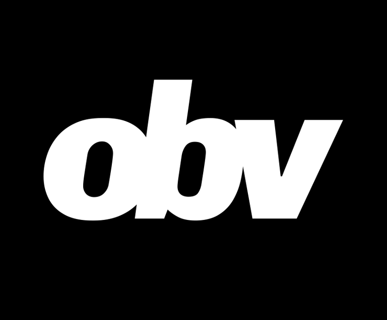 The short form logo is a fused monogram (ligature) composed of the letters OBV, created using Chivo Mono ExtraBold Italic. Negative kerning (VA) is applied to merge and tighten the letters, forming a single, cohesive visual mark. This design emphasizes identity, recognizability, and strong visual impact in compact spaces. The short form logo is the primary emblem used when the full company name is unnecessary or when space is limited.